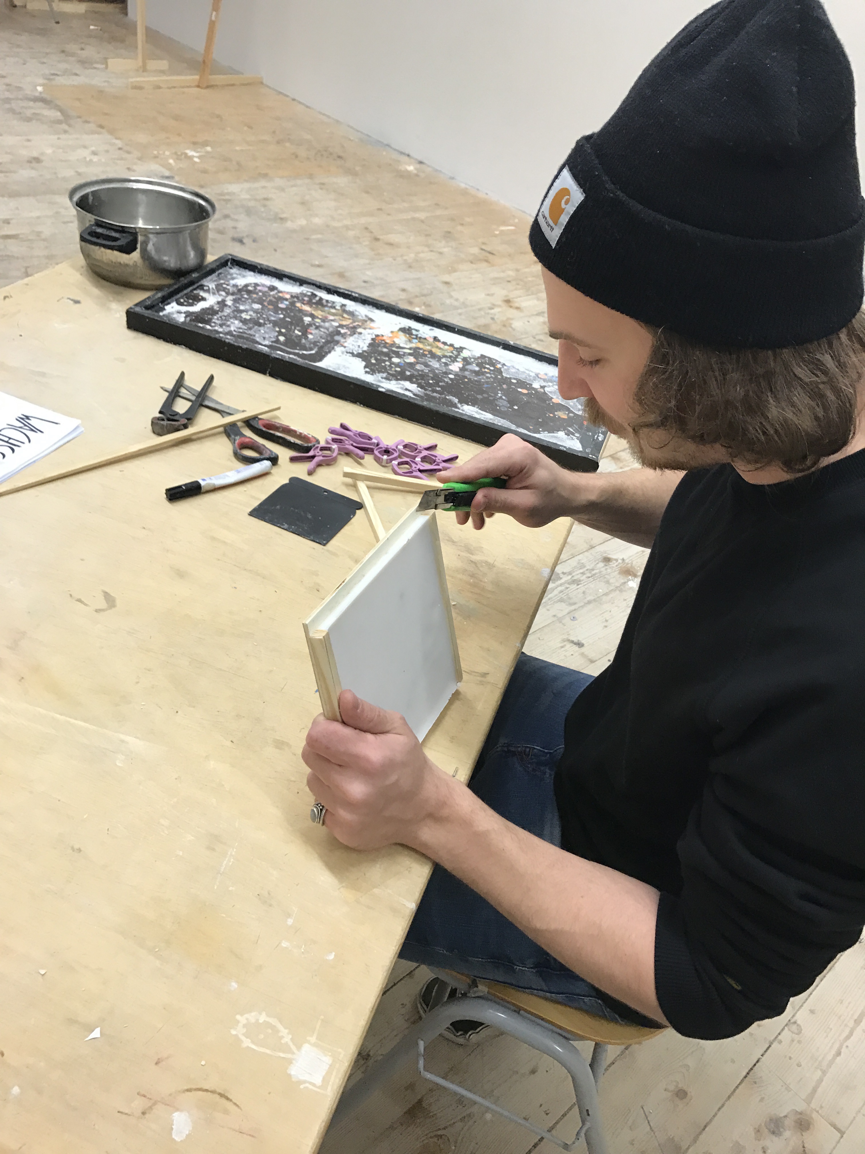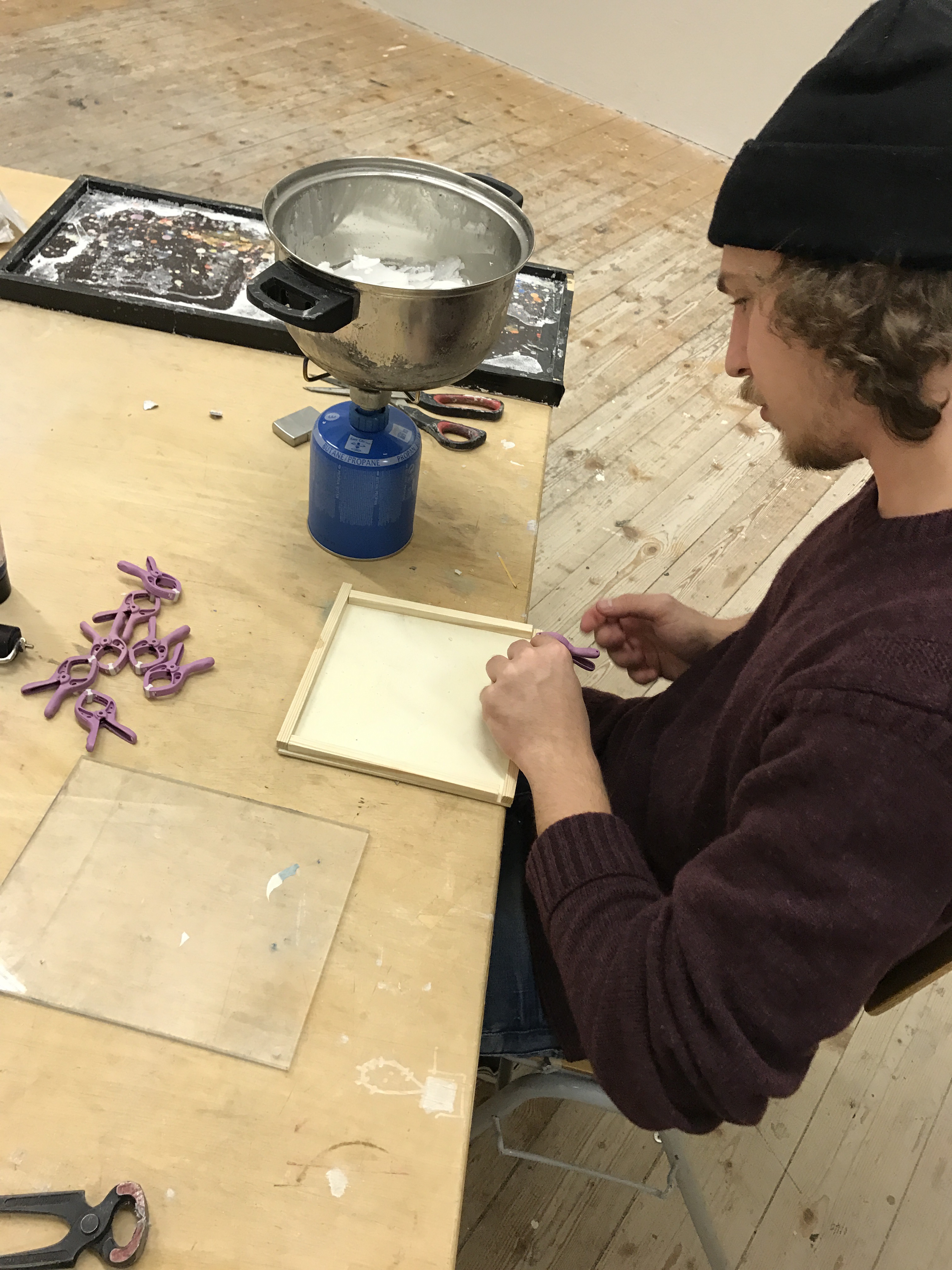 Tipp: Am besten eignen sich paraffinarme Kerzen - Während das Wachs schmilzt, montieren wir den Rahmen